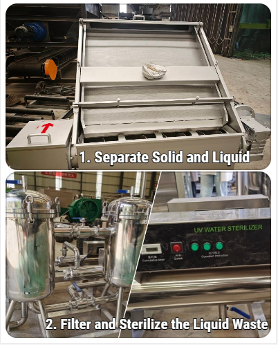 Divide organic raw materials into solid and liquid parts. Using a solid-liquid separation equipment is an excellent choice to obtain the liquid fraction, which contains the main nutrients for liquid fertilizer. You can then use a sediment tank to collect the liquid waste.